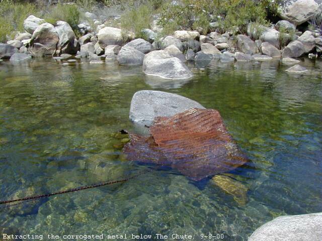 09-11-00 A large and ugly piece of a metal building was recently removed from the river below the Chute.
