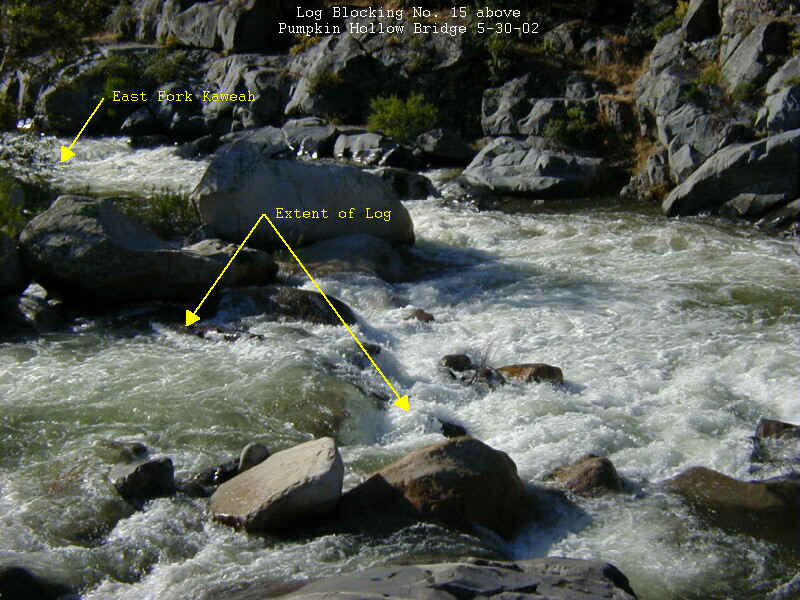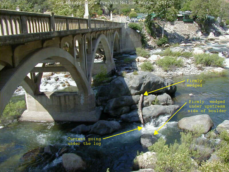 firmly wedged across the left slot immediately upstream of the bridge. Most people boat the right slot so the log went undetected