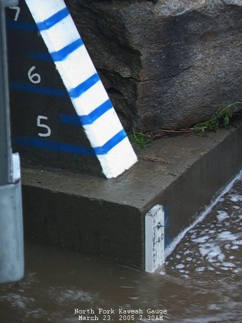 Fork gauge and later returned to run it at 1.0 feet with Cody, Kevin, and one Mike. They hoped that some of the biggest stuff would be more runable with less water only to find the opposite to be true. Cody called the