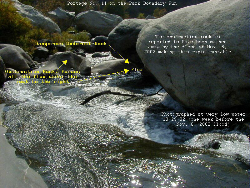 pourover. The webmaster has personally T-boned this hidden underwater obstruction more than once even at higher flows of 1.4 ft.
