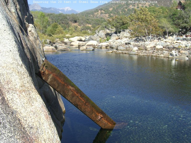 the I-beam was stuck in the mega boulders to the right of the main drop at The Chute. We now boat right over