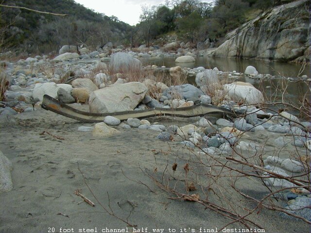 09-11-00 Another I beam was discovered in July 2002 in Gateway about half way down when the flow dropped to below 200 cfs.