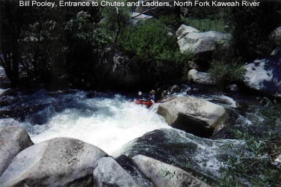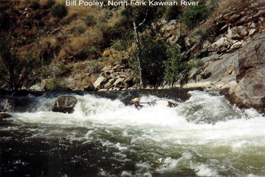 I was boating on the Kaweah and it's tributaries for a total of three weeks this season. The second two week trip with Steve Lyford saw 9 consecutive days on the North Fork between 1.9 ft.and 1.45 ft. We did an exploratory run from 4 miles up the South Fork and numerous runs above and below Dinely Bridge on the main Kaweah. We also got down on the Tule for 2 runs. It was a big water year and the North Fork was running through July 12th. --Your Kaweah Webmeister, Bill Pooley--